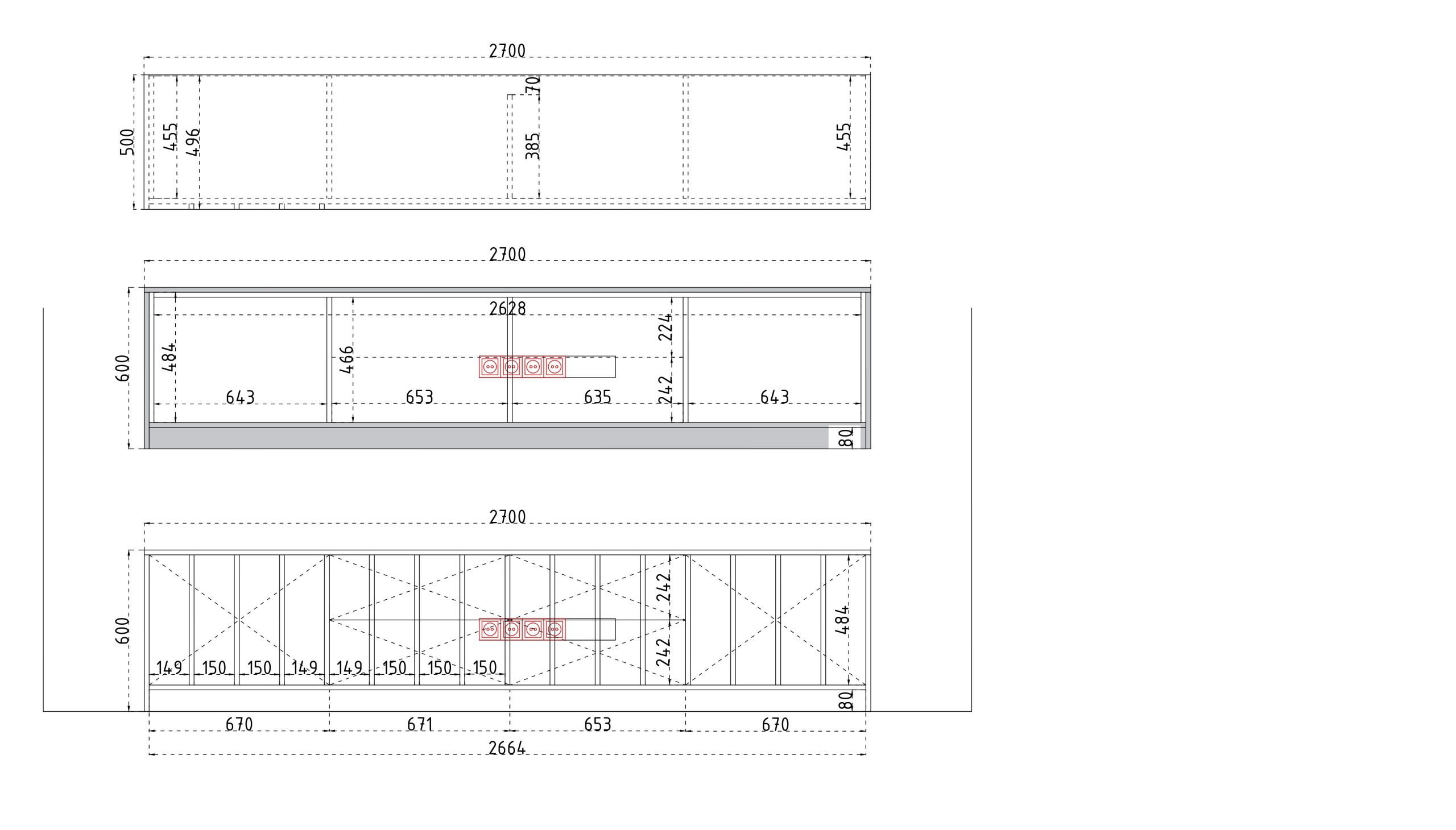 Išmatavimai: aukštis 60,0 cm x plotis 270,0 cm x gylis 50,0 cm.