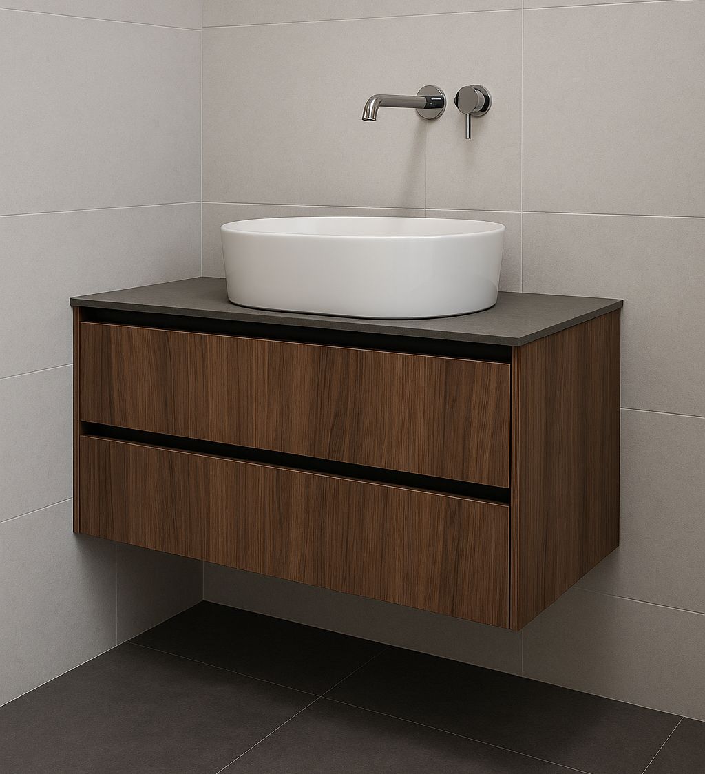 Medžiagos: plokštė Egger H1307 ST19, stalviršis compact HPL.